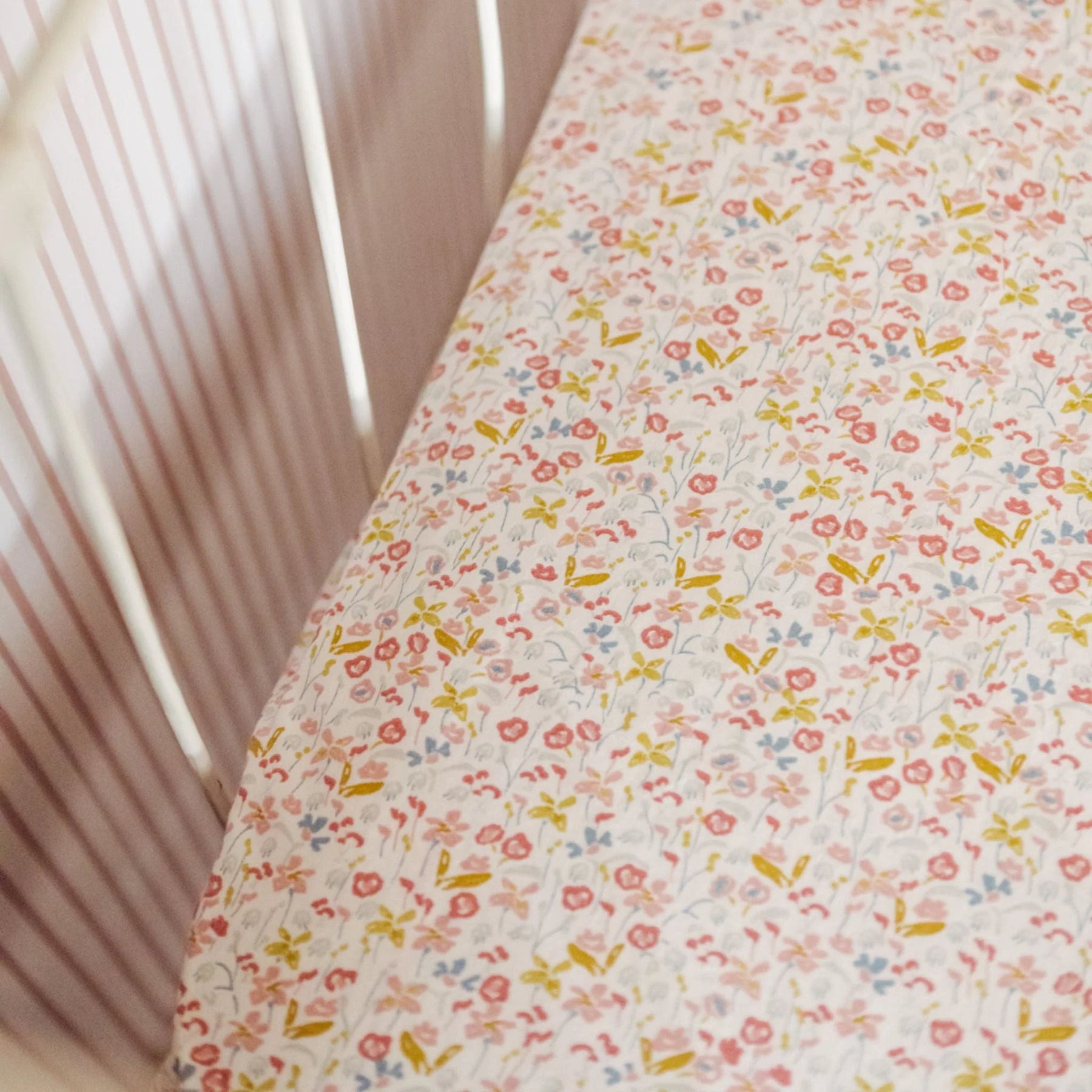 Crafted in brushed organic cotton, this breathable and soft Floret crib sheet will give your little one the perfect night’s sleep. Designed to ensure a safe snug fit, our baby crib sheet fits cots and mattresses up to 52" x 28" x 8" and stay soft wash after wash.